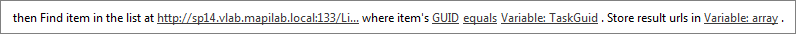 To obtain the Url of the list in which the search is conducted, you can use the action, “Get List Url”, or simply copy this Url from the browser address string. In the case considered in the example, the browser string for the list’s address is: http://sp14.vlab.mapilab.local:133/Lists/HarePoint%20Tasks/AllItems.aspx